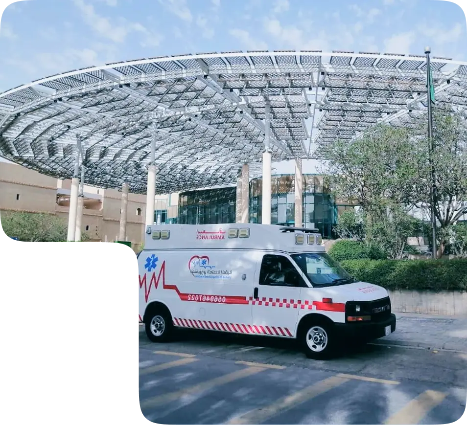 To be pioneers in providing comprehensive services in ambulance transport, training, consultancy, clinic operations, remote clinics, and supporting quality accreditations in healthcare facilities, contributing to creating a safe, sustainable, and high-quality healthcare environment in the Kingdom of Saudi Arabia.